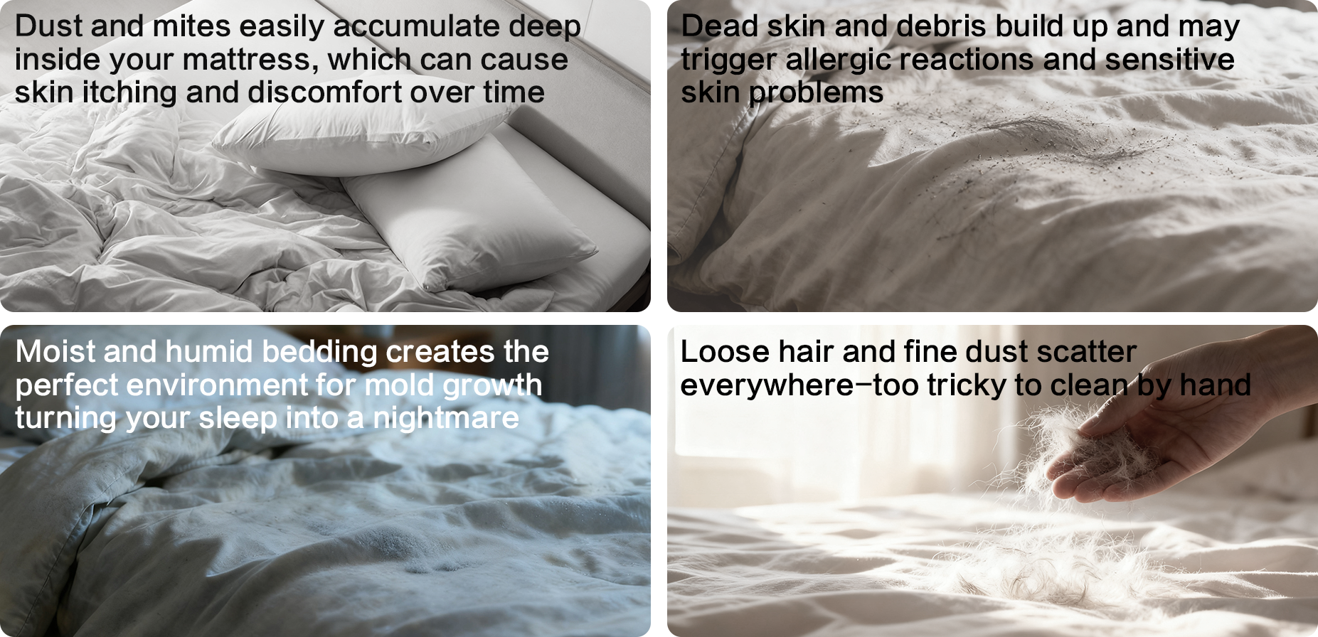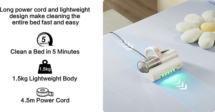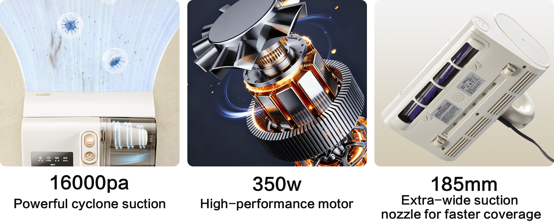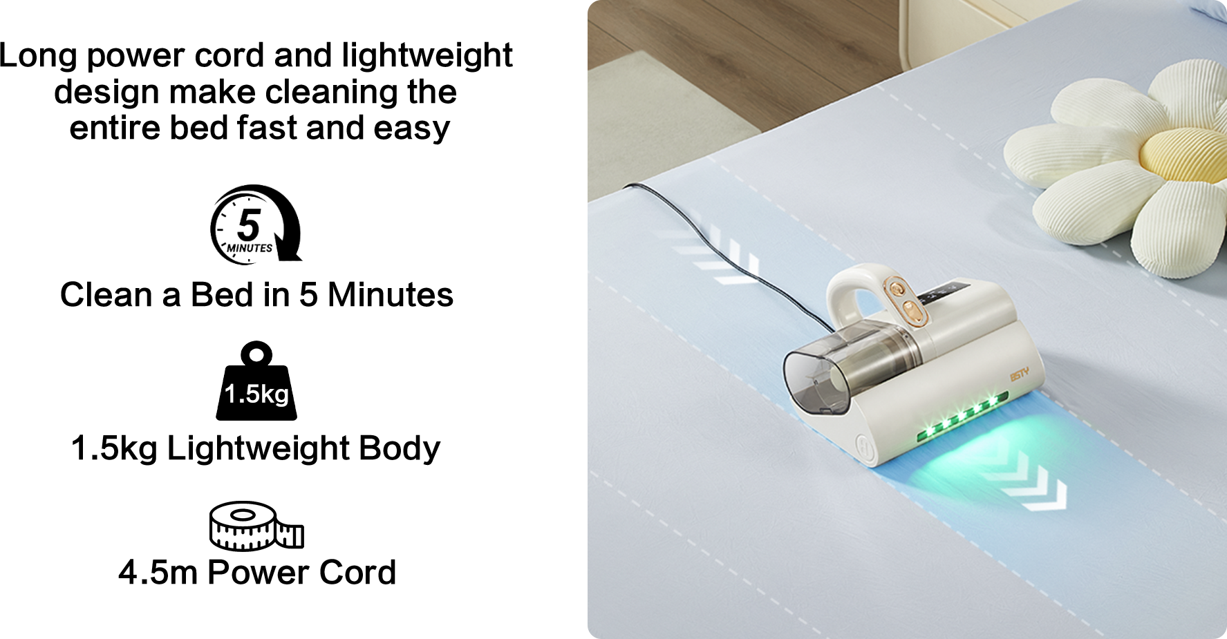 Upgraded PVC Beating Strips deliver stronger tapping to release deeply embedded dust mites, while the soft fiber brush gently removes surface mites with minimal fabric wear. Shop NowFour Powerful Cleaning Modes in One Device