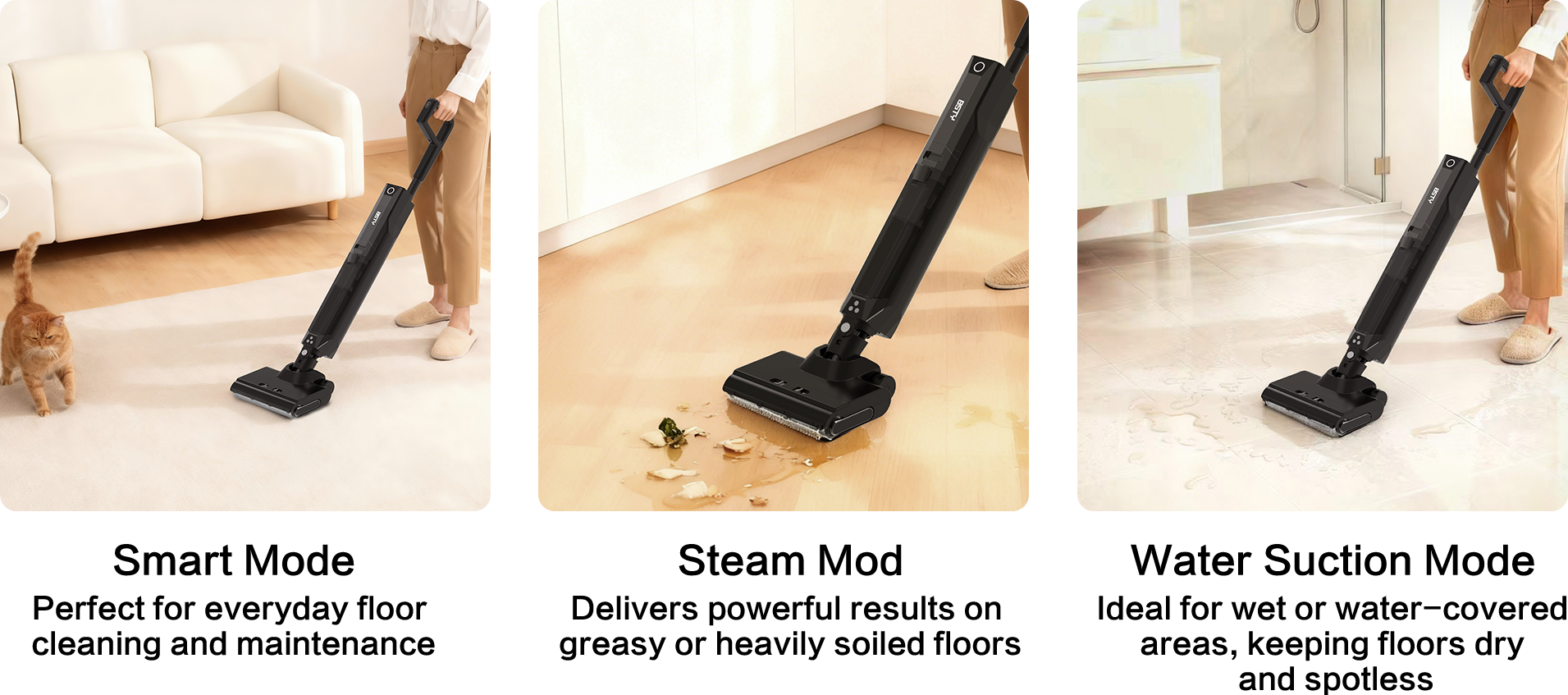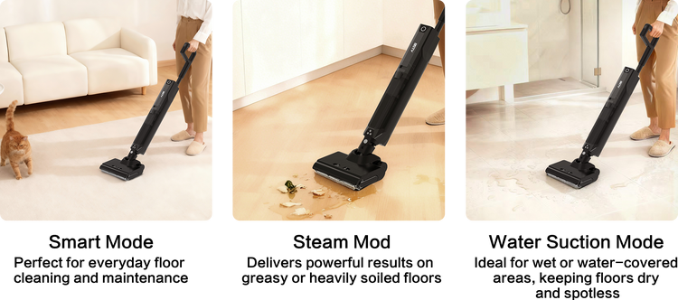 True High-Temperature Steam Cleaning — Removes tough floor stains with ease.